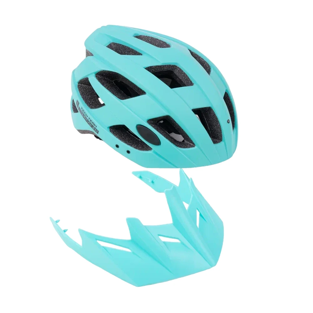 Шлем Tech Team Country 3.0 - эффектный аксессуар для любителей экстремального спорта. Оттенок бирюзы придаёт ему уникальность, а вентиляционные отверстия обеспечивают комфортное использование. Отличительной чертой этой модели является дополнительный съемный козырек, который, при желании, можно установить на шлем. Козырек не только защитит глаза от солнечных лучей, но и благодаря своей аэродинамической форме, будет способствовать улучшению скорости. Шлем идеально подходит для катания на трюковом самокате, велосипеде BMX или роликах.