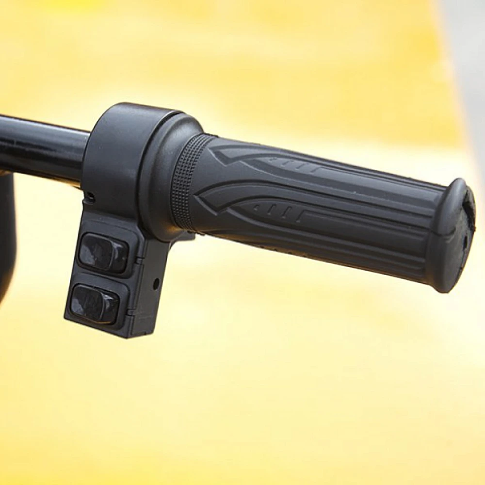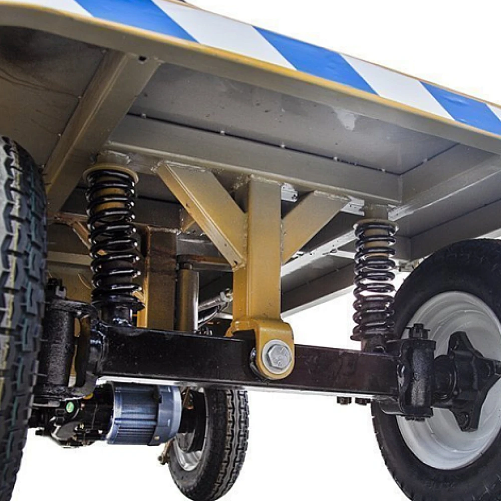 Тележка двигается за счет электродвижка с параметрами мощности 800 Вт. Управление проводится с помощью ручки акселератора мотоциклетного типа. Модель простая в эксплуатации, не требует особого обучения.