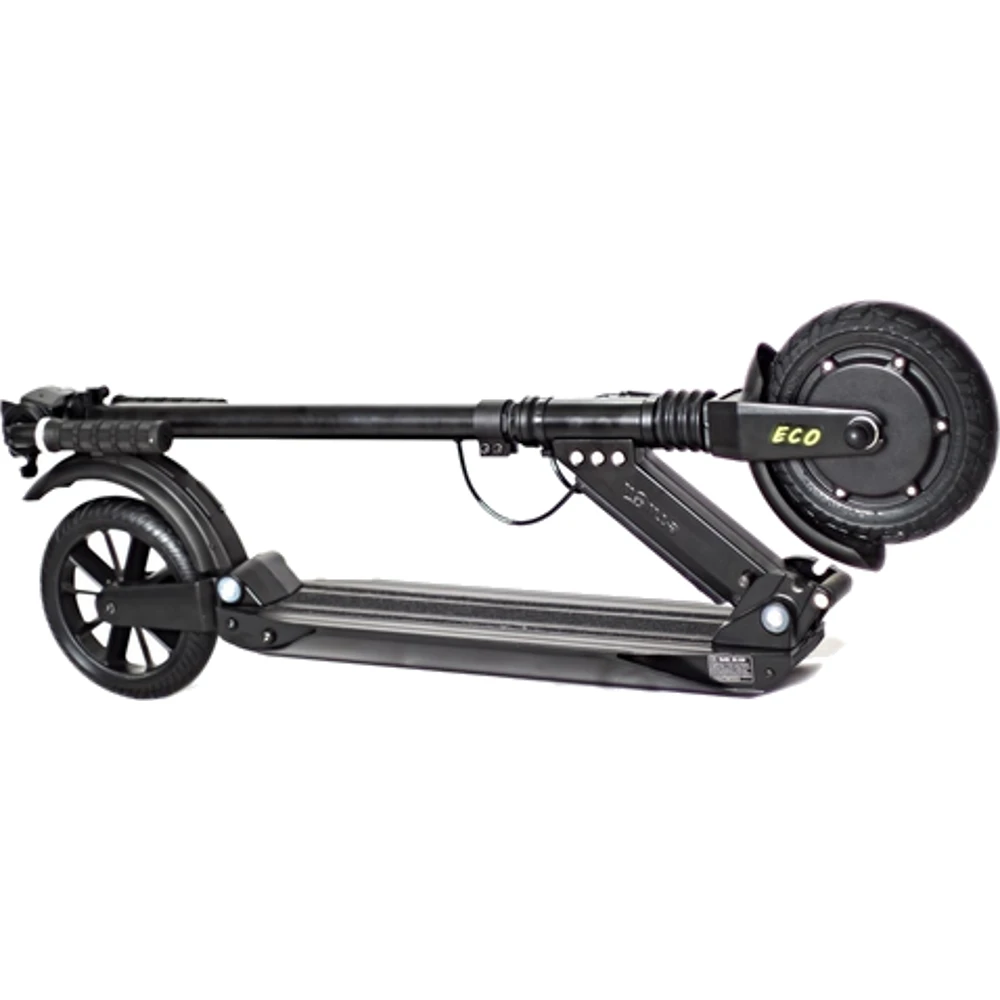 Электросамокат Generic E-twow S2 ECO легкая версия, его масса 10.5 кг. В сложенном состоянии занимает очень мало места. Легко носить в руках, нет проблем с хранением. Не смотря на вес, усиленная конструкция самоката выдерживает нагрузку 120 кг. Это отличительная черта E-twow.