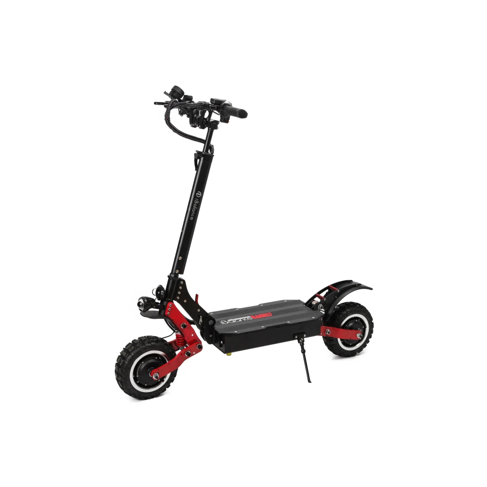 Электросамокат iBalance Bandit мощный полноприводный агрегат, который подойдет для передвижения по любому бездорожью. Прочная массивная конструкция вызывает доверие, максимальная нагрузка на устройство 150 кг. С усиленной амортизацией передних и задних колес электросамокат имеет плавный ход даже по гравийной дороге. Колеса диаметром 11 дюймов, с протекторными внедорожными шинами. В комплекте идут запасные шоссейные шины.