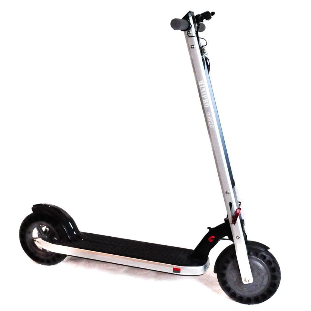 Рама данной модели изготовлена из высокопрочного алюминиевого сплава, а вес самого MiniPro mi606 – всего 15 кг. На платформе имеется специальный противоскользящий рельеф, поэтому даже в дождливую погоду вы будете прочно стоять на ногах.