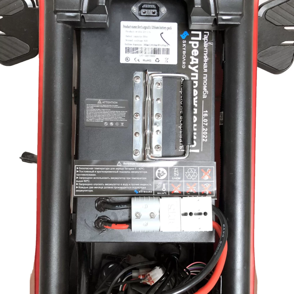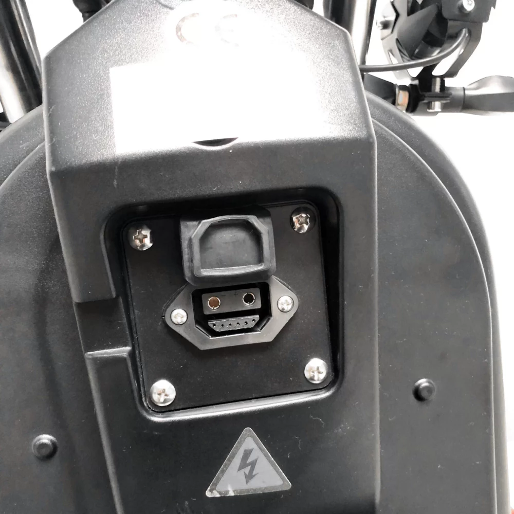 Он оснащен съемной батареей 50Ah 63V, также рассчитано дополнительное место для второй батареи 20-30A.