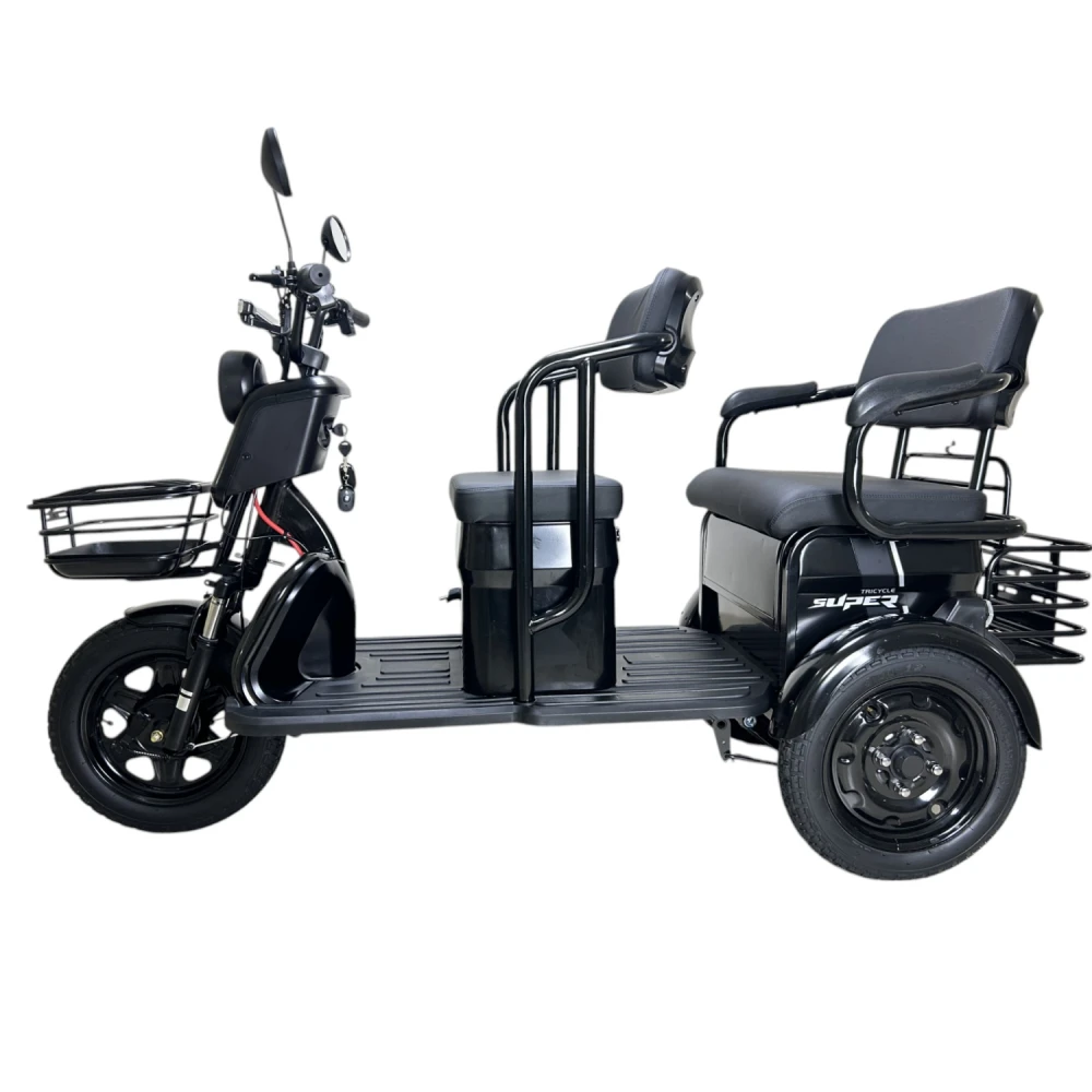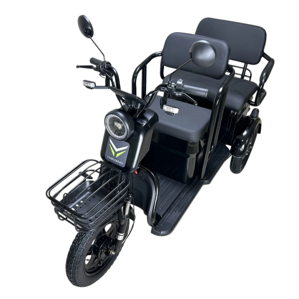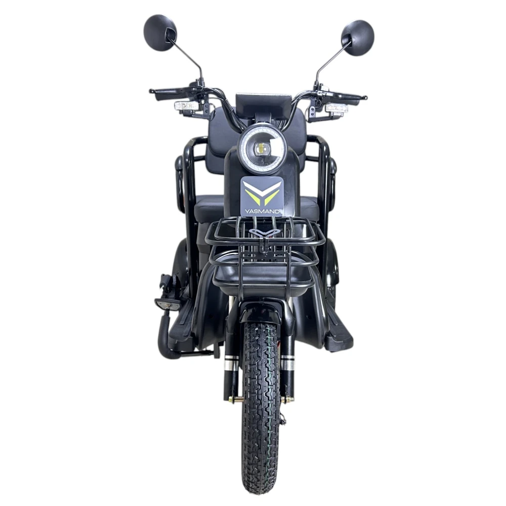 Yasmand R12 — трёхколёсный электротрицикл с задним приводом и мотором 1200 Вт. Он развивает скорость до 50 км/ч и обеспечивает комфортное передвижение по городу и на ровных загородных дорогах.
