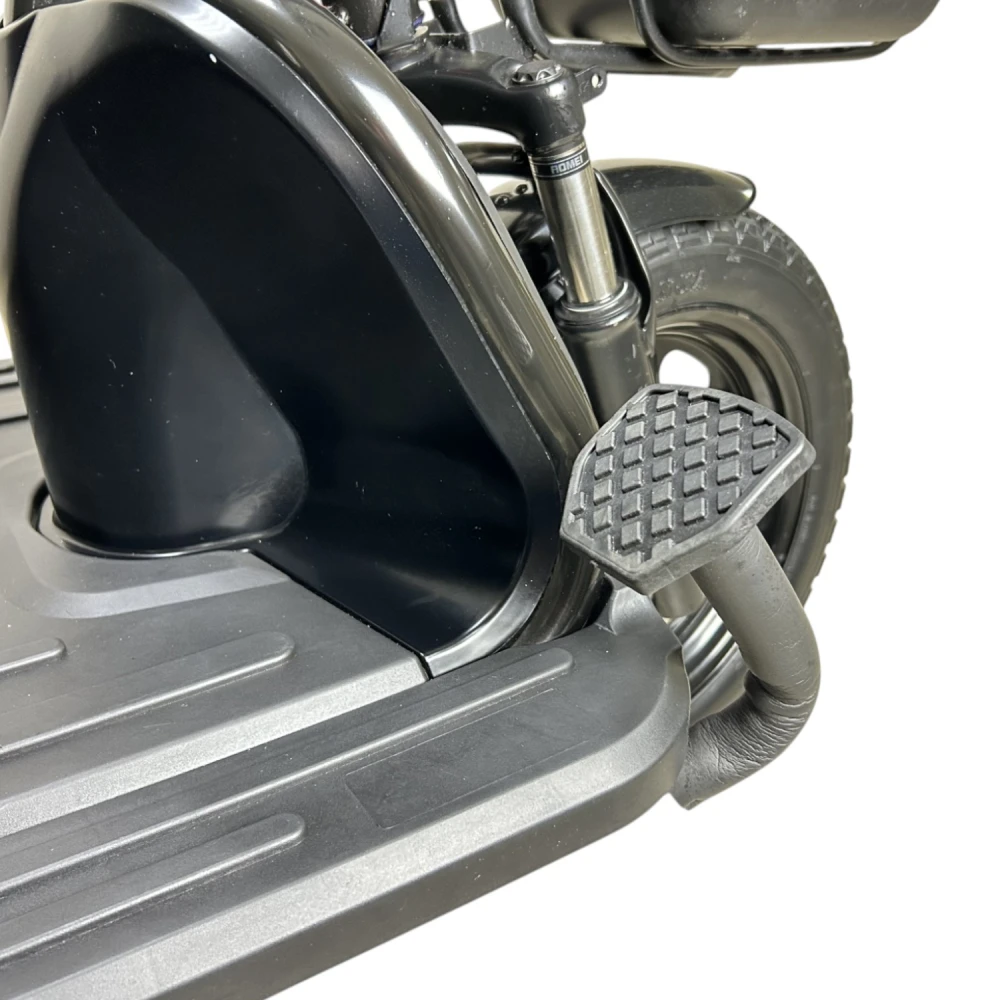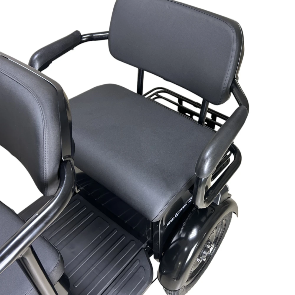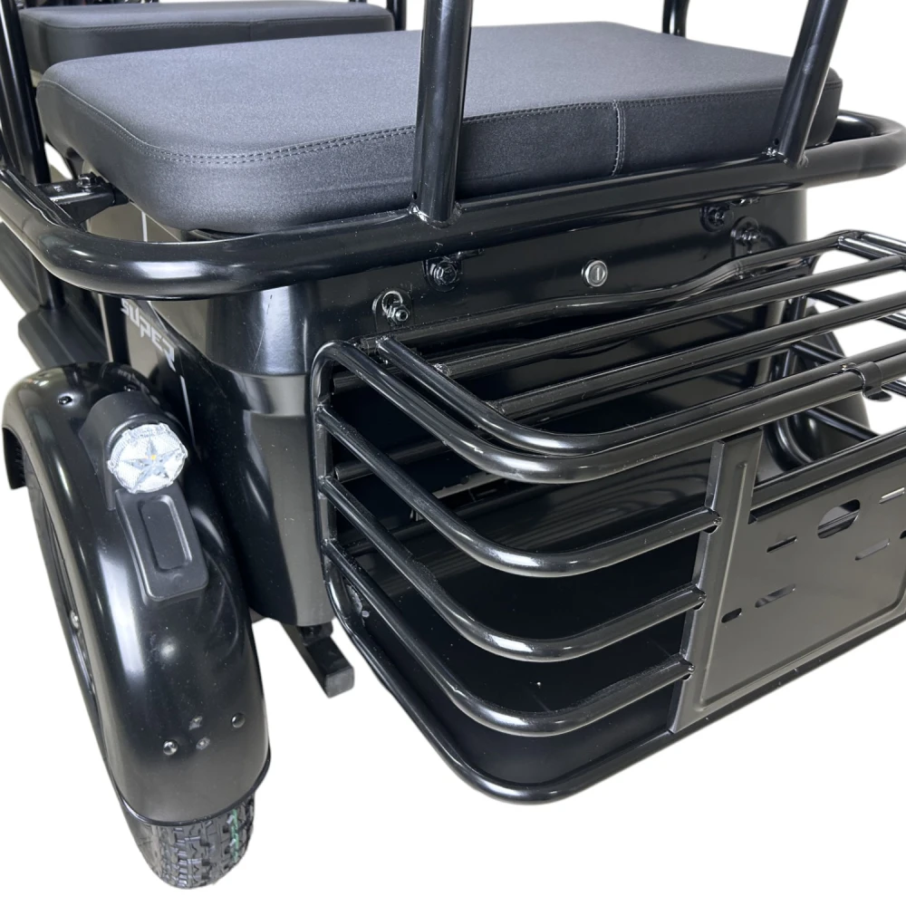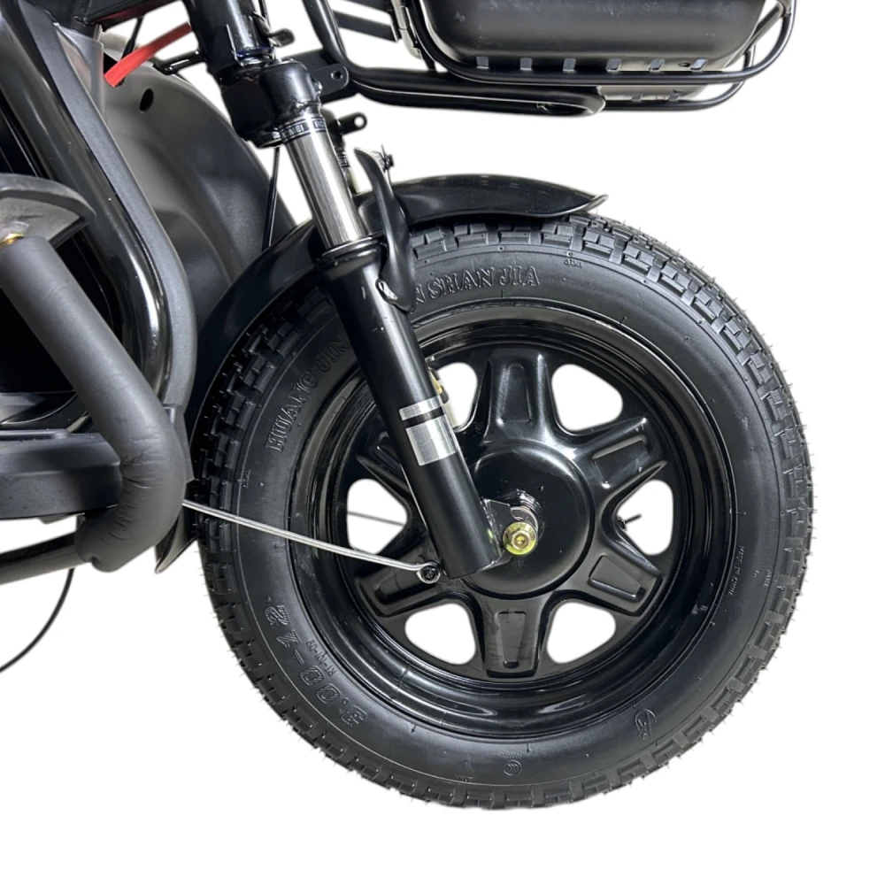 Yasmand R12 — трёхколёсный электротрицикл с задним приводом и мотором 1200 Вт. Он развивает скорость до 50 км/ч и обеспечивает комфортное передвижение по городу и на ровных загородных дорогах.