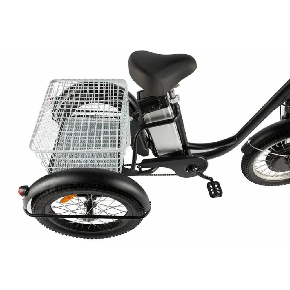 Покупка техники обещает эмоциональное удовольствие и помощь при транспортировки тяжелых предметов. При максимальной грузоподъемности 120 кг электровелосипед со скоростью 30 км/час без труда преодолевает 70 км пути. Указанный показатель максимальный среди трициклов.