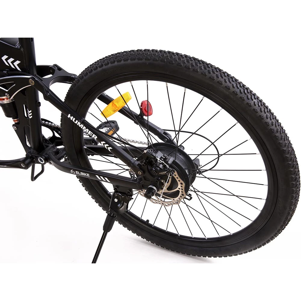 ELBIKE HUMMER VIP – одна из самых удобных моделей электровелосипеда. За счет большого диаметра колес в 26 дюймов и наличия двойной амортизации транспорт осилит любые дороги.