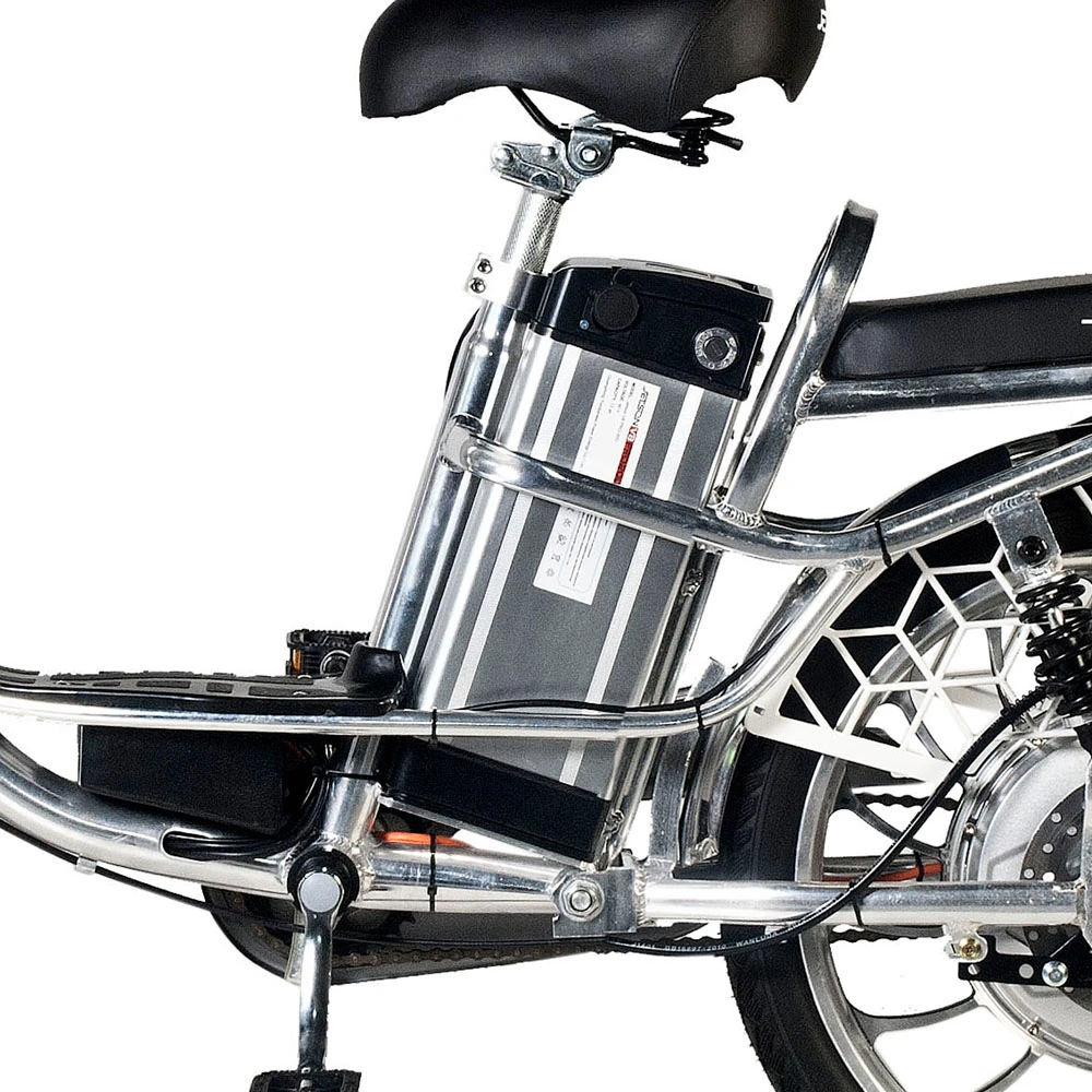 Отсек аккумулятора располагается под сидением, что делает аккумулятор легкосъёмным. Ёмкость батареи – 13000 мАч, что даёт проезжать на велосипеде до 55 километров на одном заряде.
