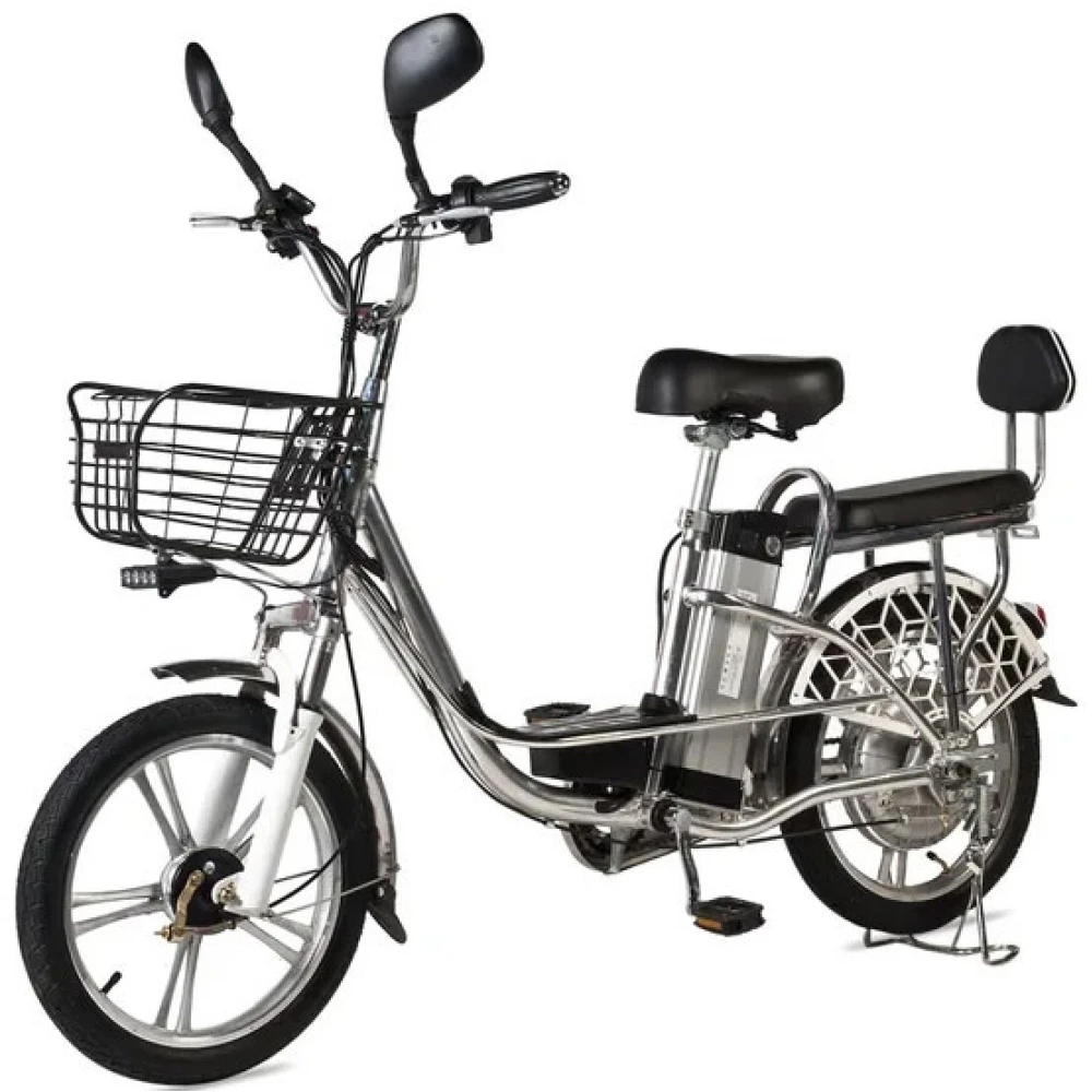 Модель рассчитана на водителя и пассажира. Оснащена передней вместительной корзиной, удобным мягким водительским сиденьем и широким сиденьем со спинкой для пассажира. Повторяющие анатомические формы тела сиденья снимают нагрузку на позвоночник, дают возможность комфортного длительного путешествия. Надеемся, вам понравился наш электровелосипед. Ждем ваших звонков!
