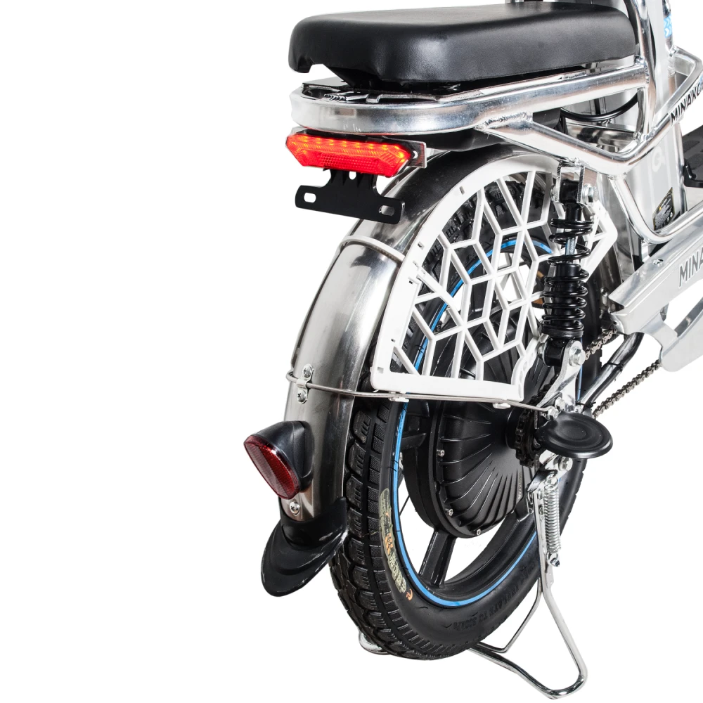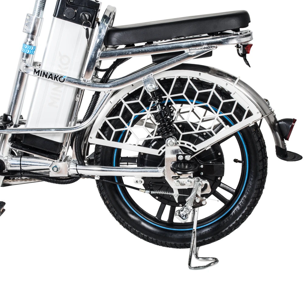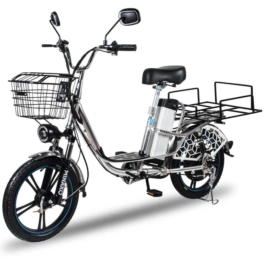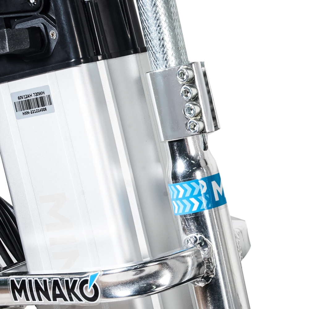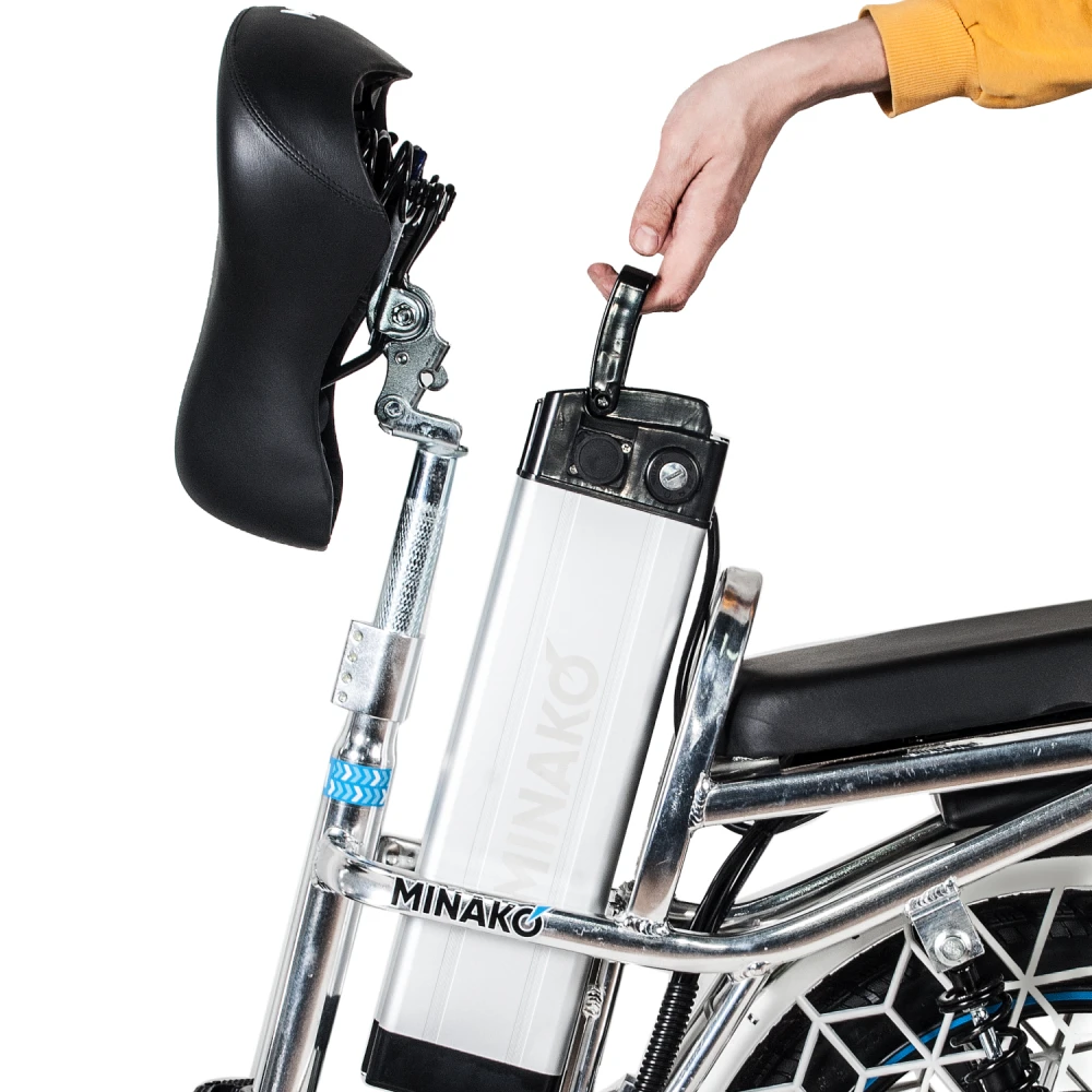 Велогибрид Minako V8 Pro идеально сочетает в себе комфорт и большую дальность хода, скорость и практичность. Приписка + 15 Ah в названии модели означает, что в комплекте к велосипеду идёт дополнительный аккумулятор ёмкостью 15 Ач. Вместе со штатным аккумулятором ёмкостью 12 Ач они обеспечивают запас хода до 100 километров.