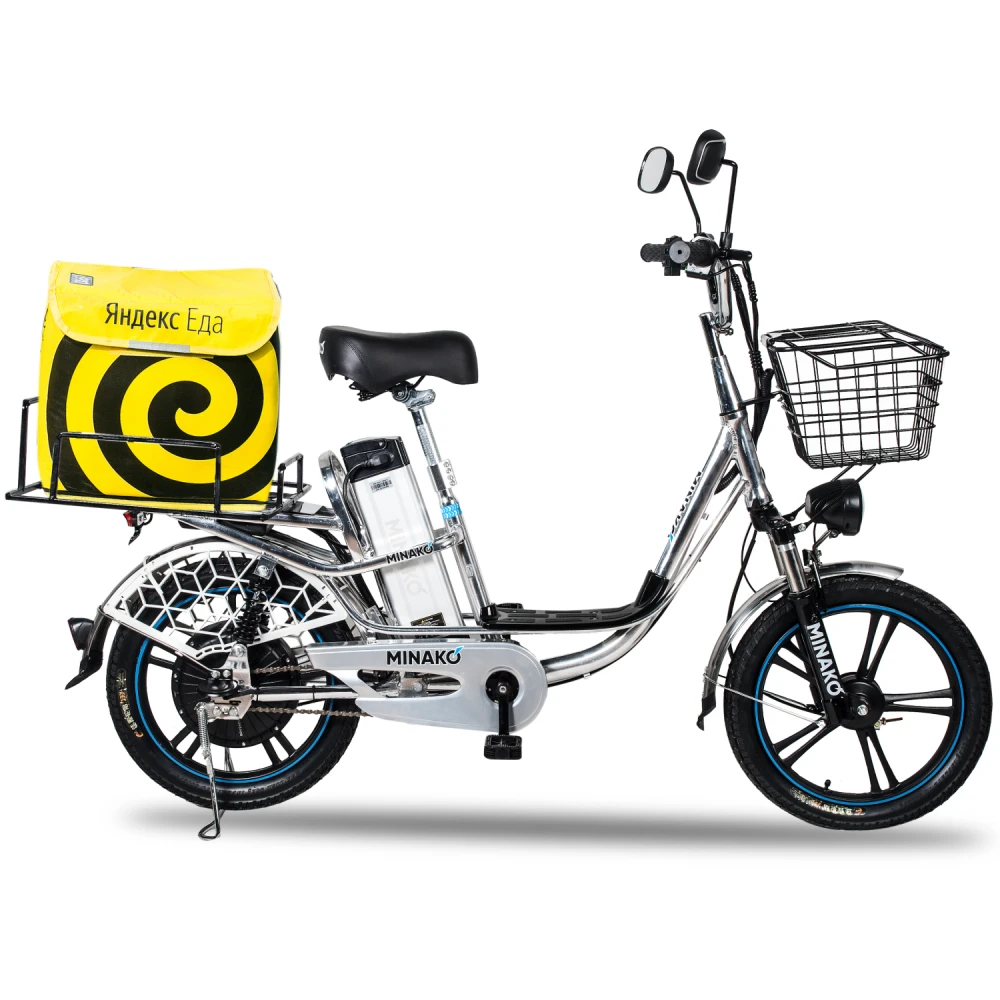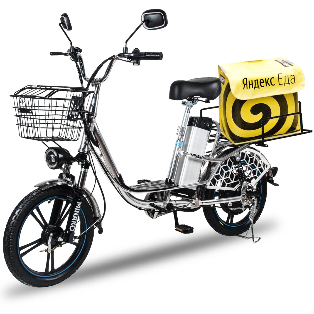 Комплектация велосипеда довольно богатая. В отличие от конкурентов, велосипед по умолчанию имеет зеркала заднего вида, корзинку на руле, подножку и багажник, и это не смотря на то, что он комплектуется дополнительной батареей!