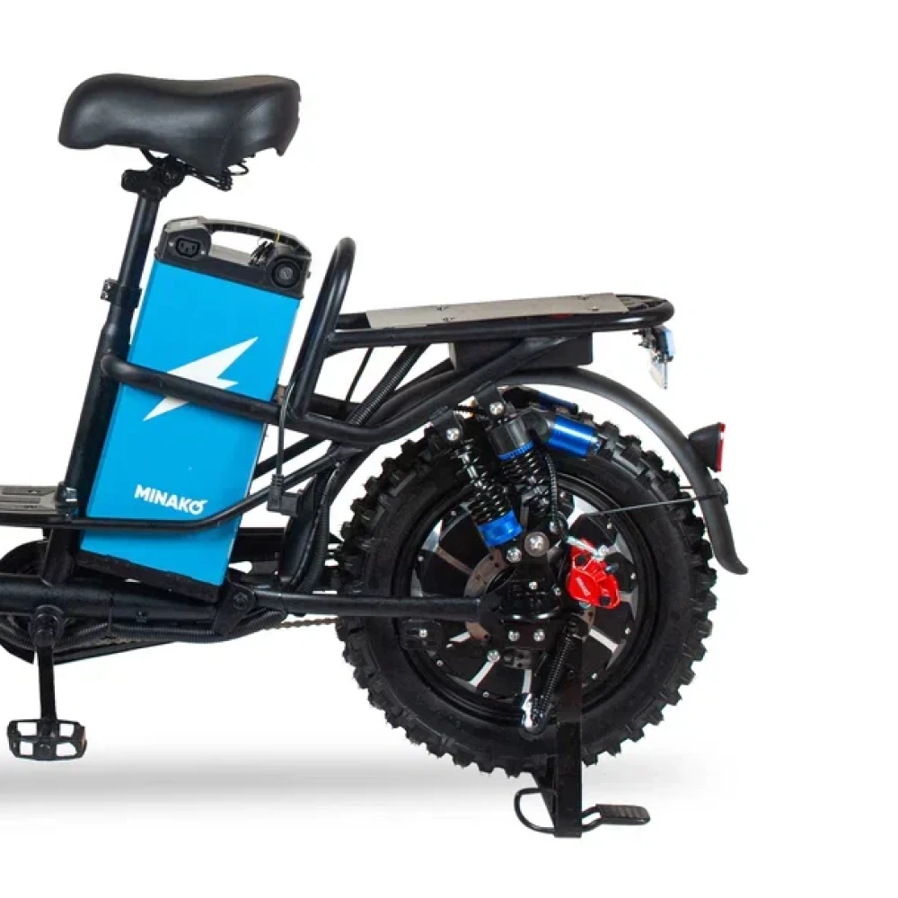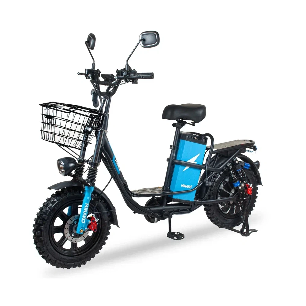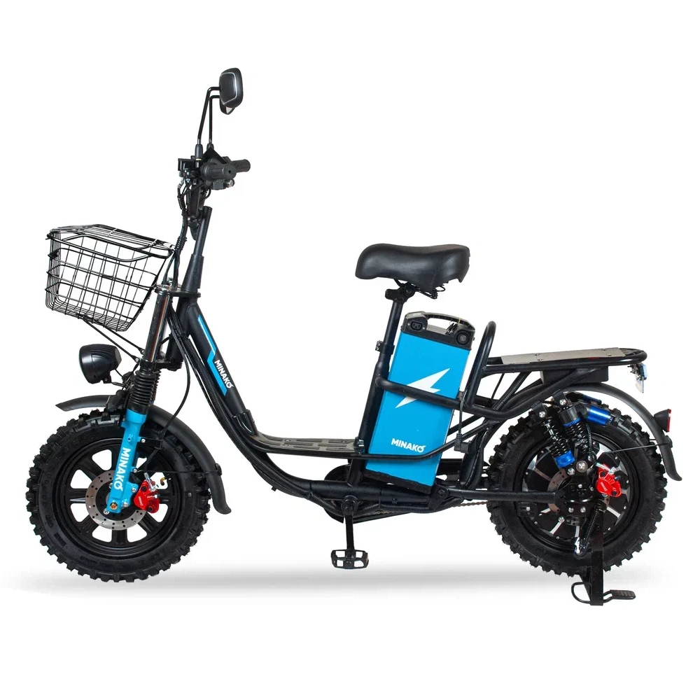 Электровелосипед Колхозник Minako Titan — это идеальное сочетание мощности, стиля и комфорта, предназначенное для тех, кто ценит активный отдых. С максимальной скоростью до 50 км/ч и максимальным пробегом на одном заряде в 80 км, этот электровелосипед станет вашим надежным компаньоном в любых поездках, будь то городские прогулки или загородные выезды.Уникальная металлическая цельная рама обеспечивает прочность и долговечность, а мощный 500-ваттный двигатель гарантирует динамичное разгон и высокую производительность. Призматический аккумулятор на 30Ah Li-NMC не только повышает эффективность, но и позволяет сократить время зарядки до всего лишь 3 часов с зарядным устройством на 10 А/ч.Гидравлические передние и задние тормоза обеспечивают надежное торможение в любых условиях, а кроссовые покрышки 16x3.0 позволят уверенно чувствовать себя как на асфальте, так и на бездорожье. Ключ блокировки аккумулятора добавляет уровень безопасности, что особенно важно в условиях городской среды.Электровелосипед представлен в стильном черном цвете и является продуктом бренда Minako, известного своим качеством и надежностью.