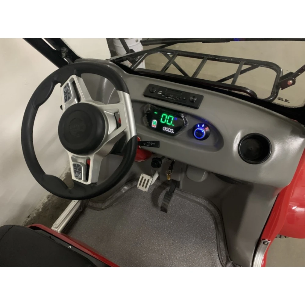 Электромобиль грузоподъемностью до 300 кг рассчитан для комфортабельной перевозки пользователей и спортивного снаряжения. Повышенный комфорт при езде обеспечивается широкими сидениями с оригинальным покрытием. Мощность мотора 2500 Вт позволяет развивать максимальную скорость 30 км/час. Для удобства передвижения предусмотрен вместительное багажное отделение. Плавность хода модели возможна благодаря шасси с дифференциальным типом передачи. Гелевая АКБ емкая, благодаря высокому качеству допускает пробег на одной подзарядке до 100 км. Фирменные зеркала и диодные фары предусмотрены производителем для поездок в темное время суток.