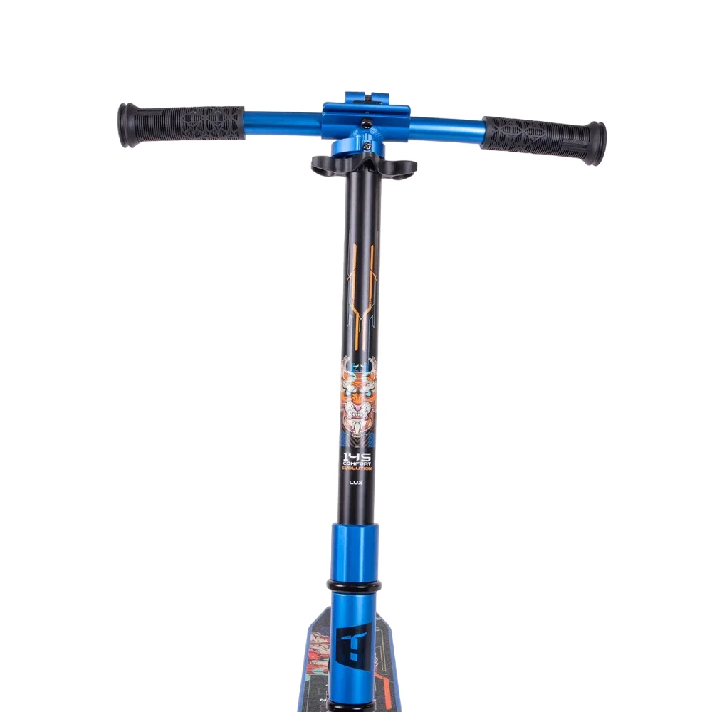 Самокат Tech Team Comfort 145 Lux Evolution 2024 синий – это воплощение мощи и стиля для юных гонщиков. Весом всего 3.75 кг, он легок и удобен в использовании. Колеса диаметром 145х30 мм с подсветкой не только обеспечивают плавный ход, но и привлекают внимание в темное время суток. Складная конструкция позволяет легко хранить и переносить самокат. На деке изображен мощный тигр в стиле демона, что придает самокату уникальный и дерзкий вид. Встроенная подсветка деки, отличающая версию Lux, добавляет еще больше яркости. Подшипники ABEC 7 гарантируют безупречное скольжение. Регулируемая высота руля (82-91 см) делает самокат идеальным для детей от 5 лет и ростом от 110 см. Этот самокат – не просто средство передвижения, а настоящий вызов обыденности и скуке.
