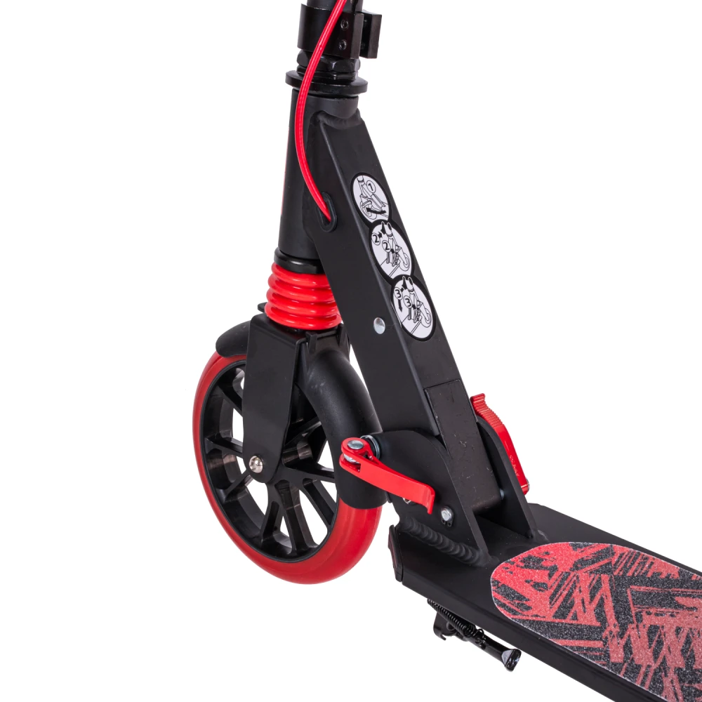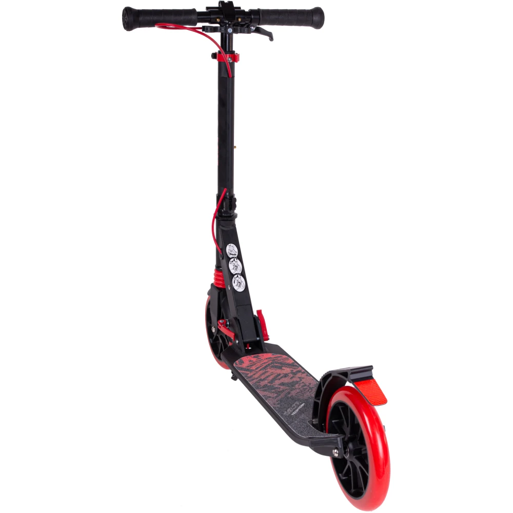 Самокат Tech Team Delta 2023 черно-красный – яркая современная техника выделяет юных райдеров среди других участников движения. Модель изготовлена для пользователей от 5-летнего возраста. Легкая (4,4 кг), компактная и эргономичная. Считается лучшим видом транспорта для начинающего ездока. Для покупки самоката по разумной цене, без посредников предлагаем стать покупателями нашего интернет-магазина. Рулевая часть, как и дека алюминиевые. Руль оснащен анатомическими грипсами, послушный и удобный, гарантирует крепких хват. Платформа представлена размерами 136мм*440мм по ширине и длине, не скользит, позволяет разместить две стопы одновременно. 180-мм колеса с подшипниками последнего поколения накатистые, изготовлены и нестираемого полиуретана, обещают отличный накат. Покупка самоката позволит чаще бывать на свежем воздухе, кататься в свое удовольствие, получать заряд дополнительной энергии. Своевременность остановки гарантирована безотказными фирменными тормозами. Если вам понравился самокат, предлагаем не откладывать покупку на завтра, приступить к оформлению заказа прямо сейчас. Каждый клиент может рассчитывать на получение бесплатной консультации.