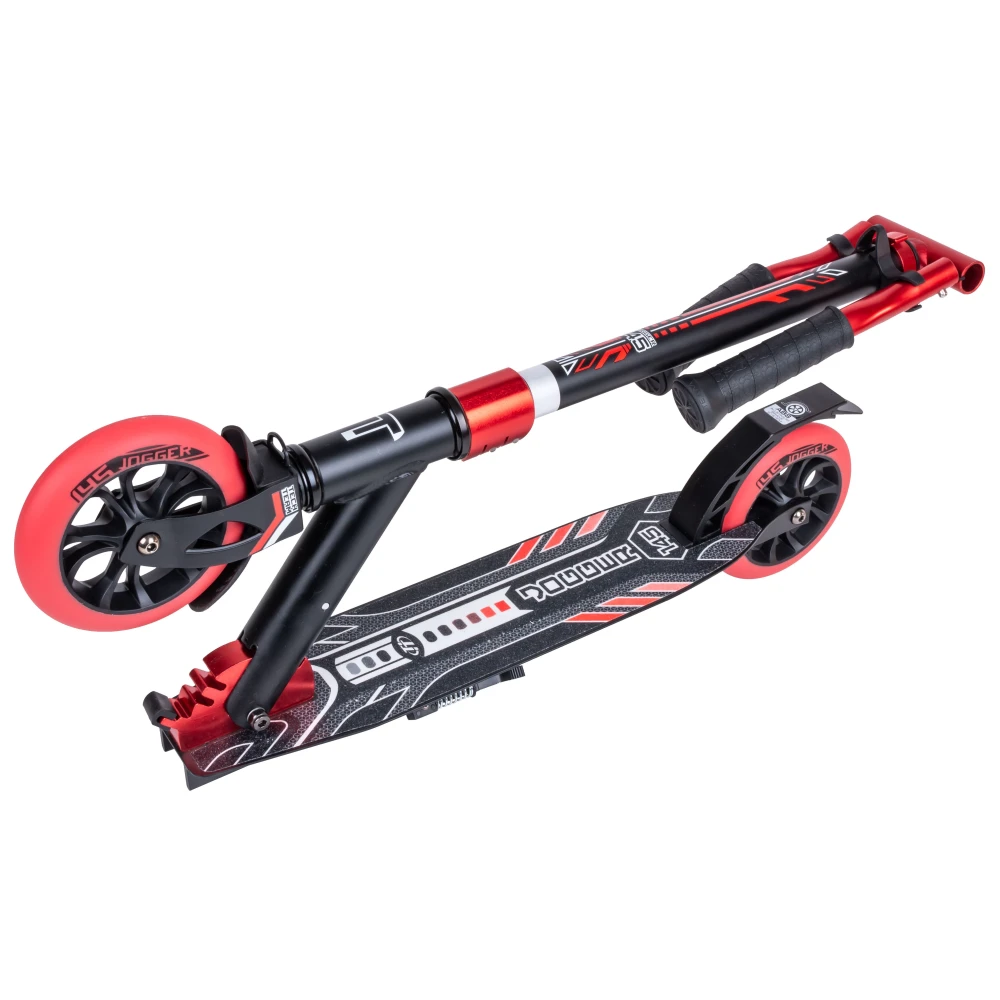 Самокат Tech Team JOGGER 145 в черно-красном цвете – шикарный вариант техники по приемлемой стоимости. Купить хит сезона 2022 выгодно предлагает наш интернет-магазин. Самокат предназначен для пользователей от 5-летнего возраста и старше. Имеет массу 3,75 кг, грузоподъемность – до 50 кг. Модель – трансформирующаяся, практичная в транспортировке. На сегодняшний день считается лучшим вариантом городской техники.
