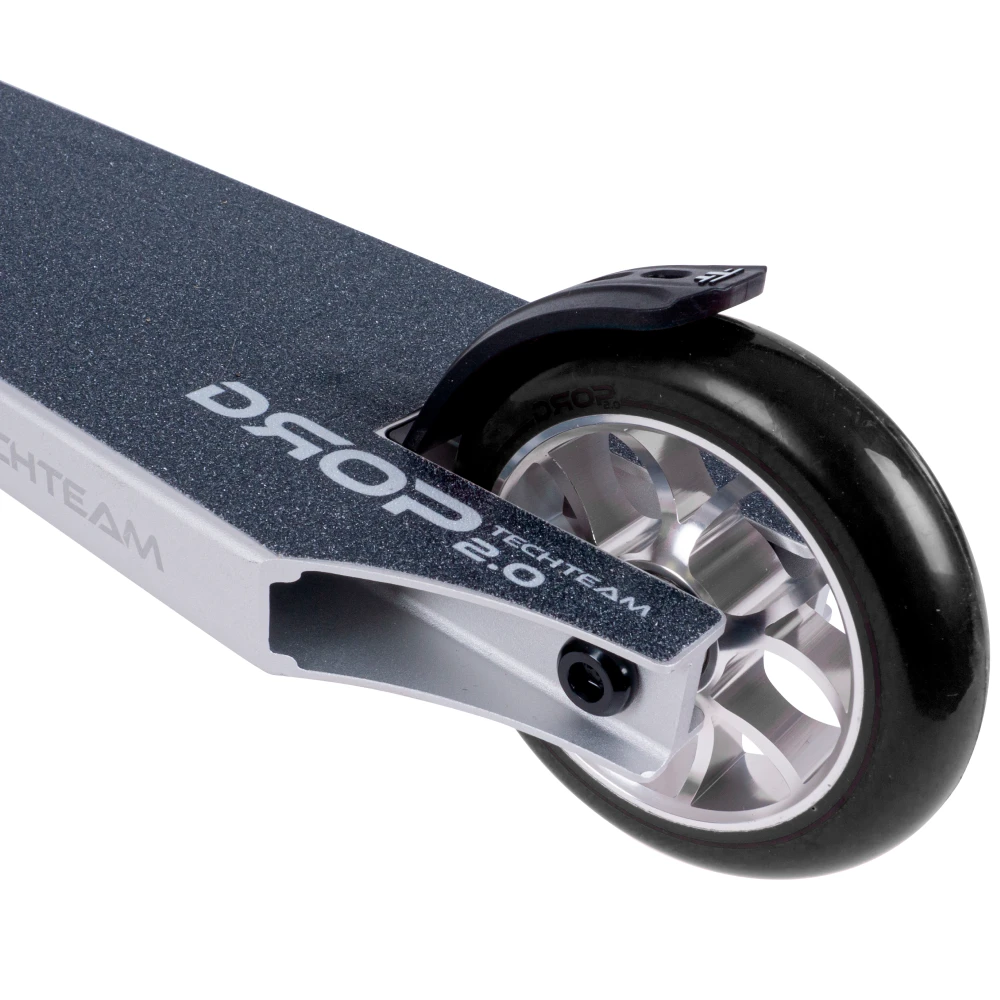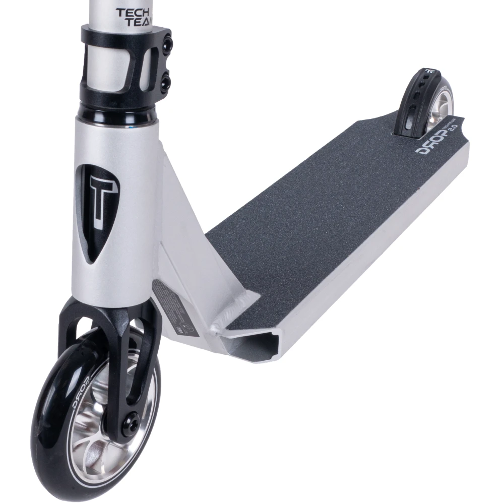 Дека самоката Tech Team Drop 2.0 выполнена из прочного алюминия, предоставляя надежную платформу для райдера. Легкая конструкция деки обеспечивает комфорт и маневренность во время катания, что особенно важно для выполнения трюков.