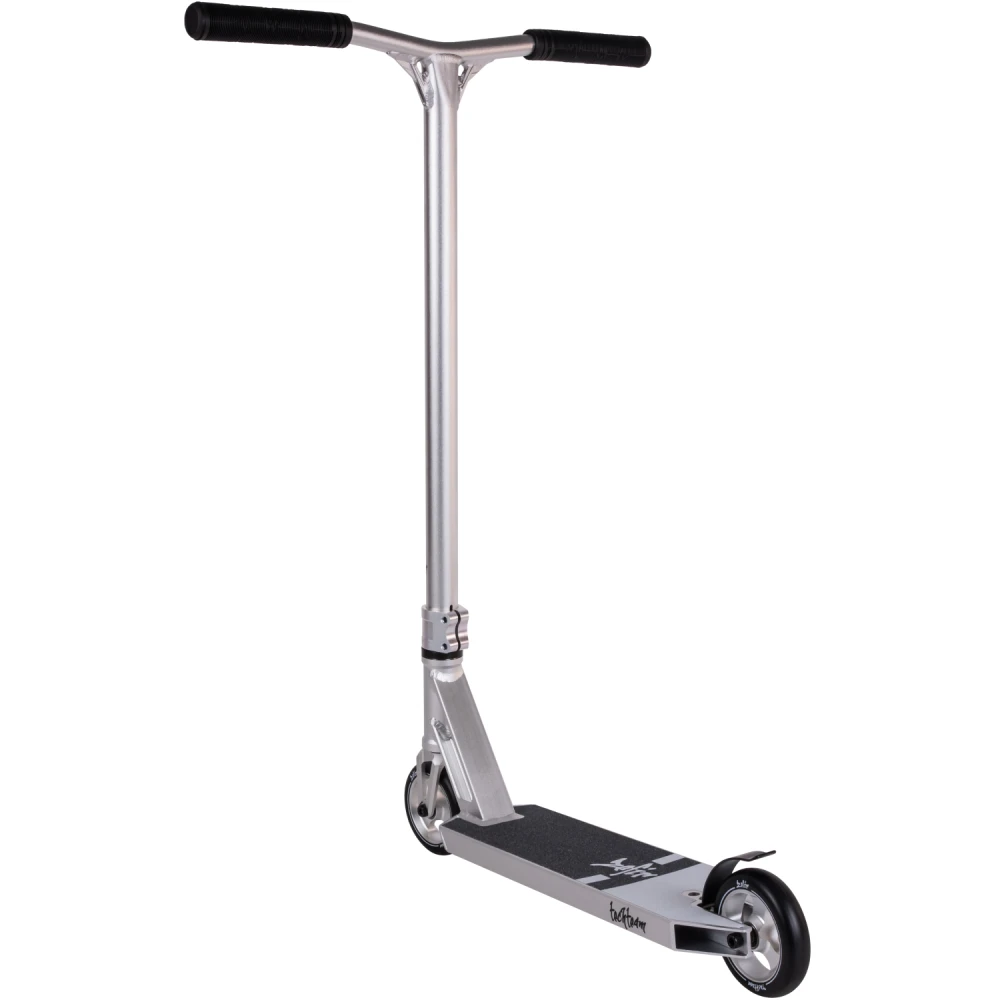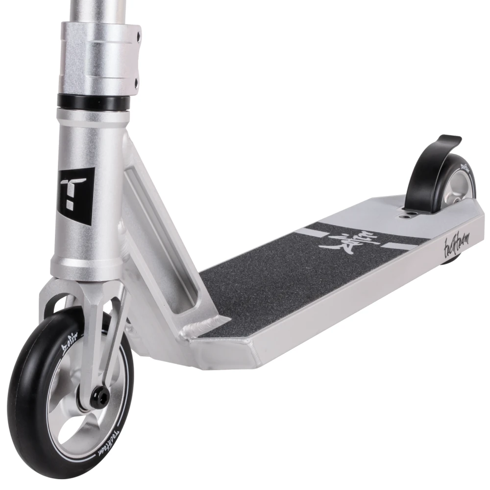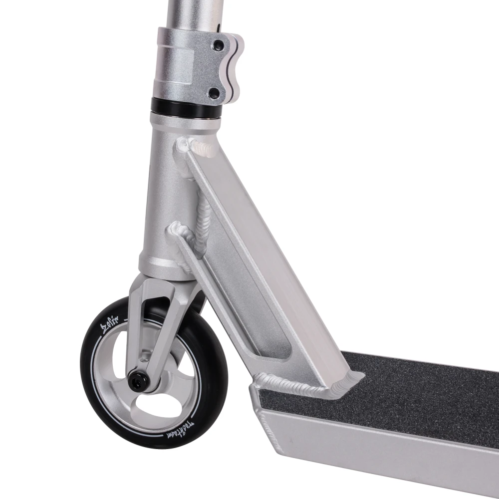 Трюковой самокат tech team Zefir 2023 Черный – лучшее предложение этого года. Модель изготовлена с учетом пожеланий трюкачей. Выглядит стильно, современно. Техническая часть выдерживает максимальные нагрузки без последующей деформации, обещает максимальный разгон и лучшее маневрирование. Приобрести самокат по цене производителя, воспользоваться бесплатной консультационной поддержкой предлагает наш интернет-магазин. Рулевая часть изготовлена из алюминиевого сплава 7003 с термообработкой T6, послушная и прочная, предназначена для выполнения трюков любого класса сложности. Соединяется с декой с помощью компрессии IHC и двухболтовыми зажимами. Прорезиненные грипсы повторяют анатомическое строение руки, увеличивают хват и уверенность пользователя, исключают соскальзывание рук и дискомфорт. Дека размерами 52 смх12 см – нескользящая, обеспечивает максимальную устойчивость стоп при выполнении прыжков. 110мм колеса с алюминиевыми дисками и параметрами жесткости 88А обещают отличный разгон. Приобретение самоката никого не оставит равнодушными, насытит жизнь адреналином, улучшит спортивные результаты. Для заказа самоката по разумной стоимости сейчас предлагаем связаться с менеджером интернет-магазина онлайн или по телефону.