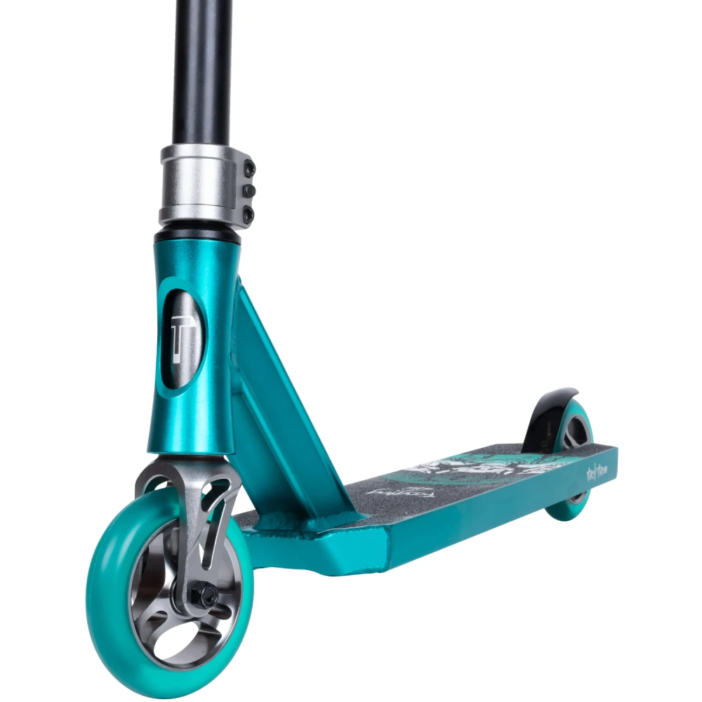 Трюковой самокат TechTeam RAGTAG MINI черно-бирюзовый – предназначен для райдеров, понимающих высокое качество прыжков и маневрирования. Купить модель по цене производителя, миновать посредников и большие надбавки поможет сотрудничество с нашим интернет-магазином.