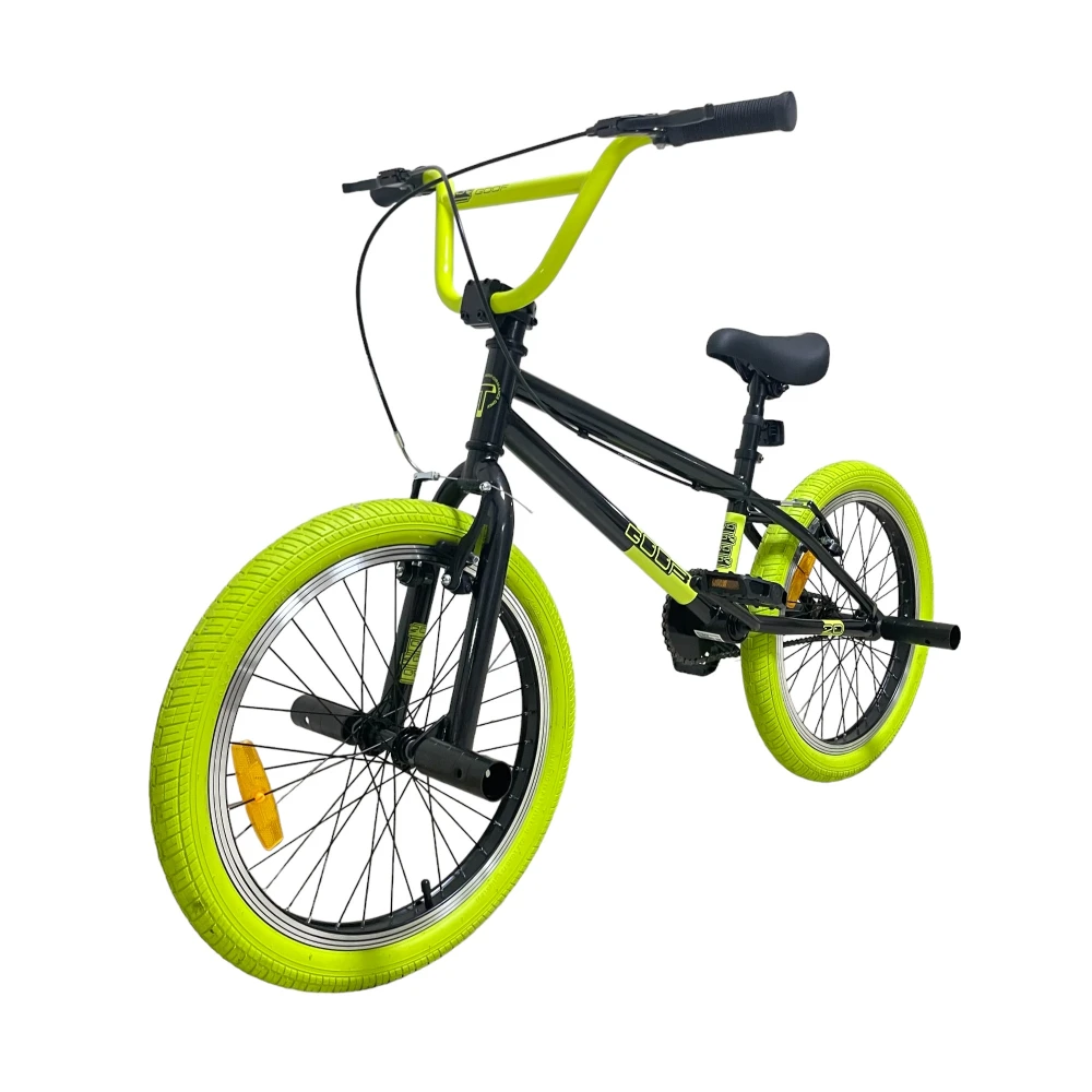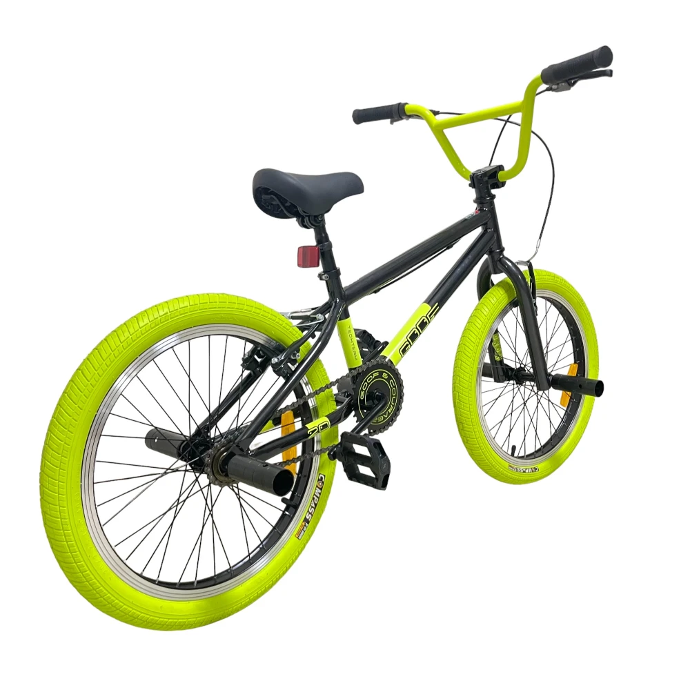 Велосипед BMX Tech Team GOOF 2024 в черном цвете с зеленоватыми рулем и покрышками – это сочетание стиля и надежности. С максимальной нагрузкой до 110 кг и 20-дюймовыми колесами, этот велосипед легко справится с любыми испытаниями. Ободные тормоза V-типа из алюминия спереди и сзади обеспечат безопасность и контроль. Стальная вилка и рама размером 18,7 дюйма делают этот велосипед прочным и готовым к любым трюкам. Пеги на передних и задних колесах и трещотка на 16 зубьев добавляют функциональности и делают его идеальным для экстремальных видов спорта.