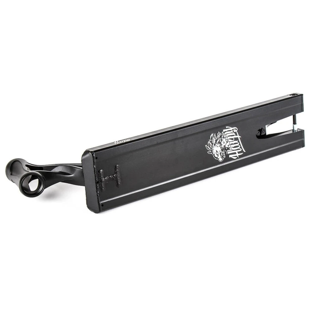 ДЕКА ДЛЯ ТРЮКОВОГО САМОКАТА HARPY черная массой 1,88 кг привлекла внимание райдеров компактными эргономичными характеристиками и простотой монтажа. Изготовлена из надежного и прочного алюминия, прошедшего термообработку Т6. Рассчитана на технику с колесами диаметром 110-120 мм. Укомплектована тормозной системой со спейсерами. Качество изделия проверено производителем, подтверждено личным опытом пользователей. Предназначен для уверенных в себе личностей, не представляющих жизни без экстрима. Покупка деки в нашем интернет-магазине гарантирует получения бесплатной консультации и другие приятные. При приобретении товара обращайте внимание на совместимость комплектующих с техникой.