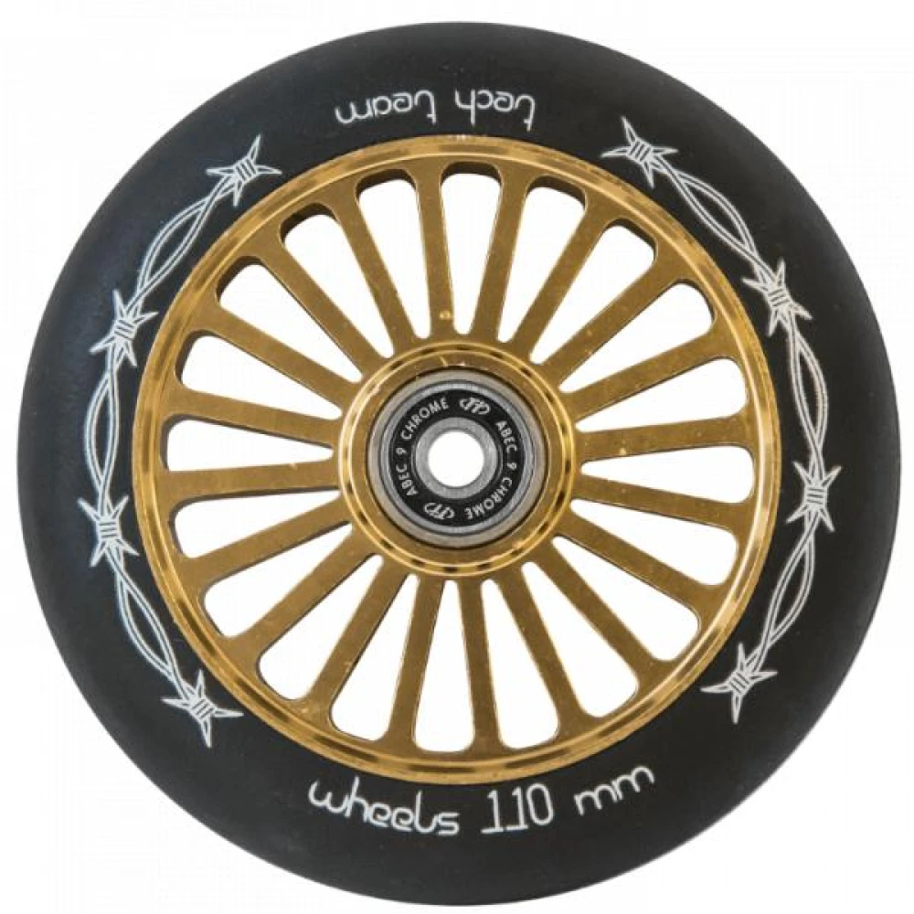 КОЛЕСО BROCK 110 MM золотое из суперпрочного полиуретана c алюминиевым корпусом вызвало восторг райдеров. Принятое производителем решение удивило всех, дало возможность совершенствования колеса. Изделие предназначена для самоката аналогичного бренда с размерами колесной части 110 mm. Колесо укомплектовано подшипником ABEC-9, обещает отличное время провождение и массу положительных эмоций. Обещает отличную накатистость и максимальные скорости без физического вмешательства ездока. Выглядит современно, заметно на фоне других участников движения. Перед оформлением заказа обращайте внимание на совместимость комплектующих с самокатом.