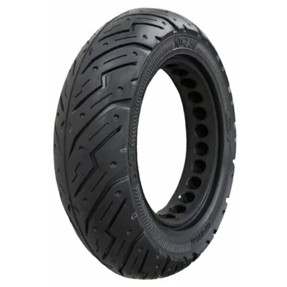 Литая/бескамерная покрышка 10Х2.50 ДЛЯ KUGOO/JOYOR имеет перфорацию для самокатов, что обеспечивает более плавный ход. Это отличный вариант, если вы хотите кататься не только по ровной дороге, но и по бездорожью, не переживая за проколы колеса.